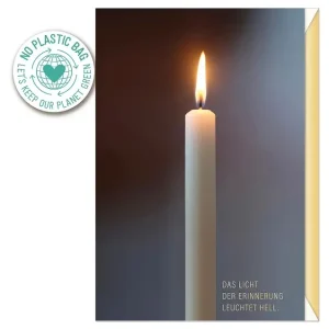 Trauerkarte: Kerze (Das Licht der Erinnerung leuchtet hell.)