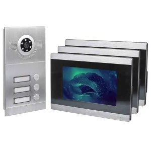 Video Türsprechanlage, Unterputz-Türstation IP65, 3X 7 Zoll Monitor