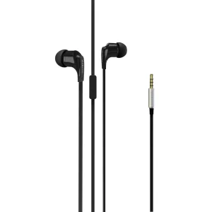 Hochwertige VIVANCO In-Ear Kopfhörer, Schwarz, mit Mikrofon, 3,5 mm Metallstecker, Flachbandkabel, klarer Stereo Sound