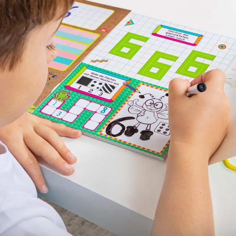 Tipp: Mit dem abwischbaren Folienstift lässt sich das Geschriebene wegwischen und neu schreiben. Somit kann man die Übungen wiederholen, um das gesetzte Lernziel schnell zu erreichen.