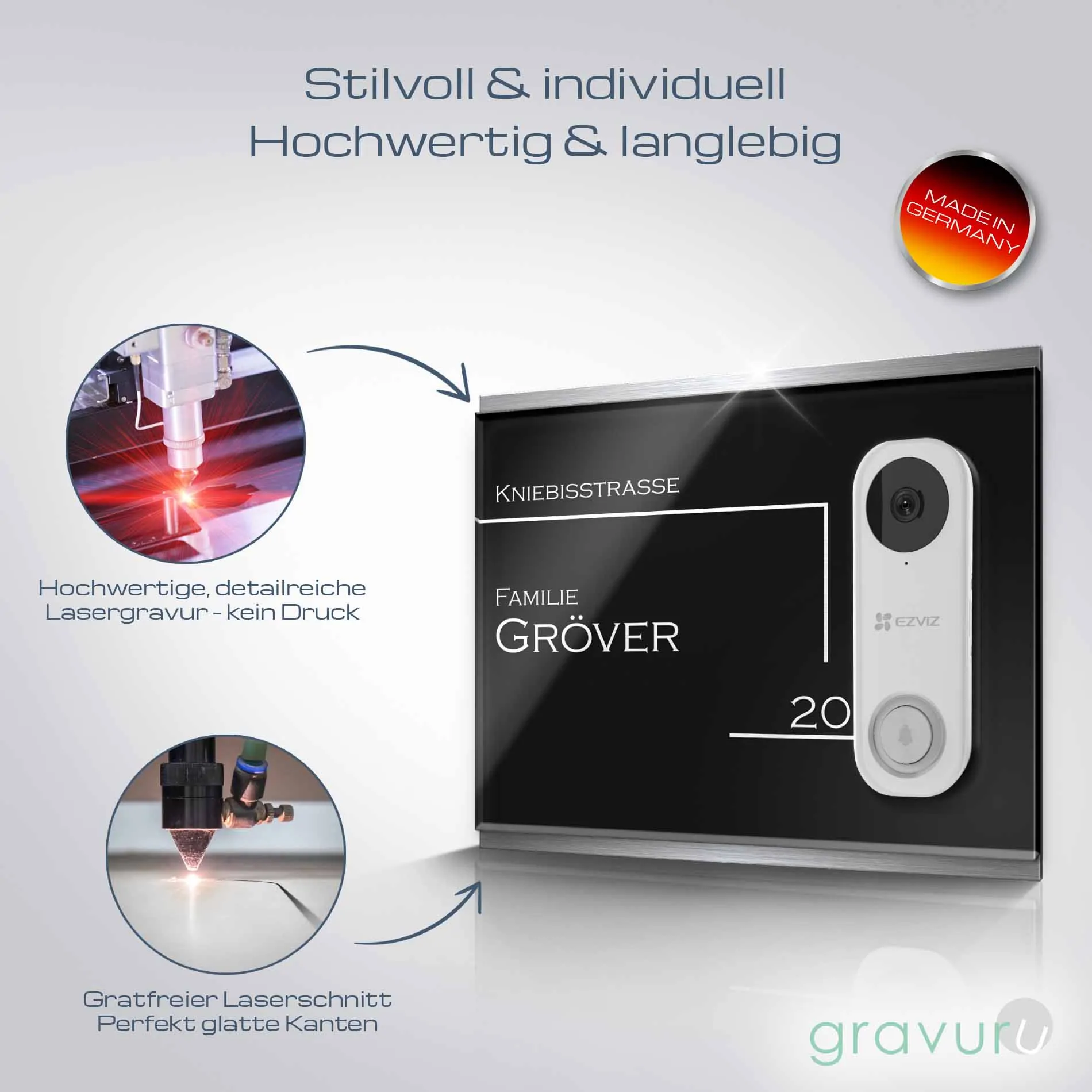 Individuelles Türschild für die EZVIZ DB1C Funkklingel aus Acrylglas und Gravur