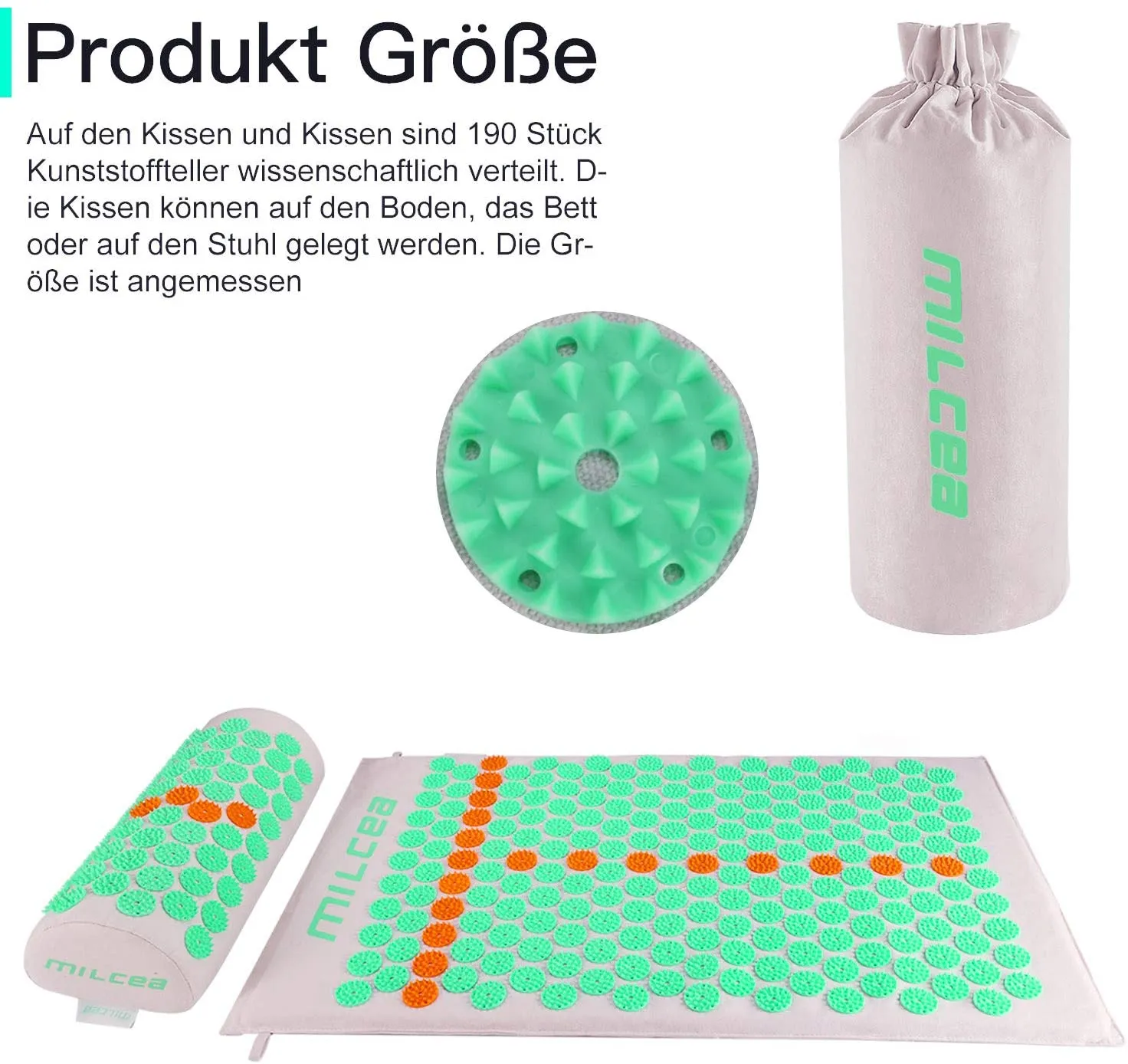 - Die Wirkung von Akupressurkissen auf den menschlichen Körper ähnelt der Akupunktur-Therapie. Akupunktur auf den Matten kann Akupunkturpunkte (Nerven) des menschlichen Körpers stimulieren, die Durchblutung und den Stoffwechsel fördern und dadurch steife Muskeln entspannen, Schmerzen und Müdigkeit lindern;