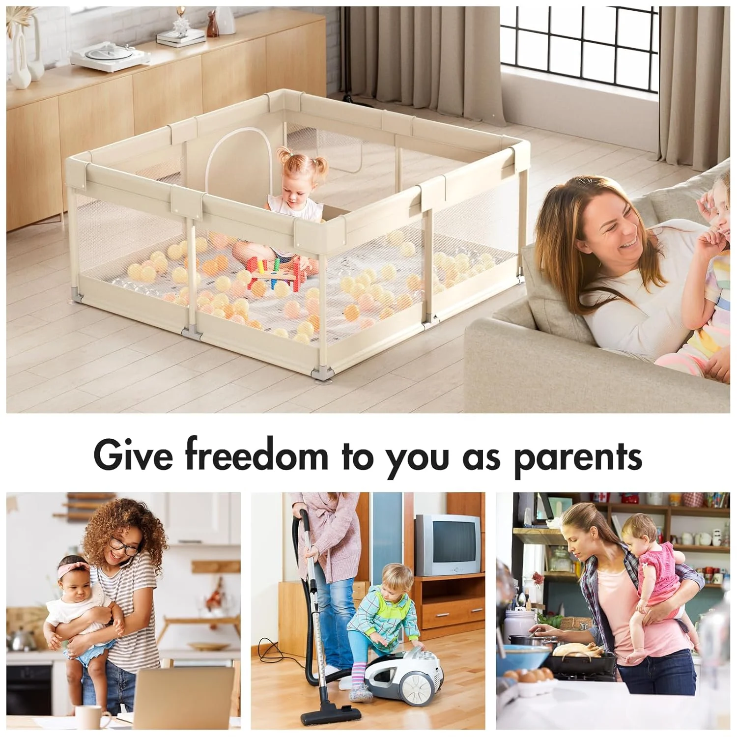 Laufstall mit passender 120×120 cm Matte – wasserdicht, waschbar & leicht zu reinigen. Kein zusätzlicher Kauf nötig.