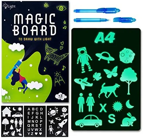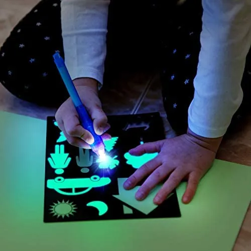 • 🌟 MAGISCHE ZEICHNUNGEN MIT LICHT: Mit der Zaubertafel zeichnen Kinder lebendige Licht-Bilder. Pädagogisch wertvolles Spielzeug macht Kindern Spass und fördert ihre Kreativität und Fantasie auf originelle und interaktive Art. Die photolumineszierende Tafel fängt Licht ein und lässt Kinder im Dunkeln Zeichnungen kreieren, die bis zu 15 Minuten zu sehen sind, ehe sie verblassen