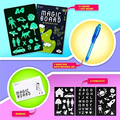 Fördern Sie die Fantasie und Kreativität Ihres Kindes mit unserer magischen Tafel, auf der man mit echtem Licht zeichnen kann!