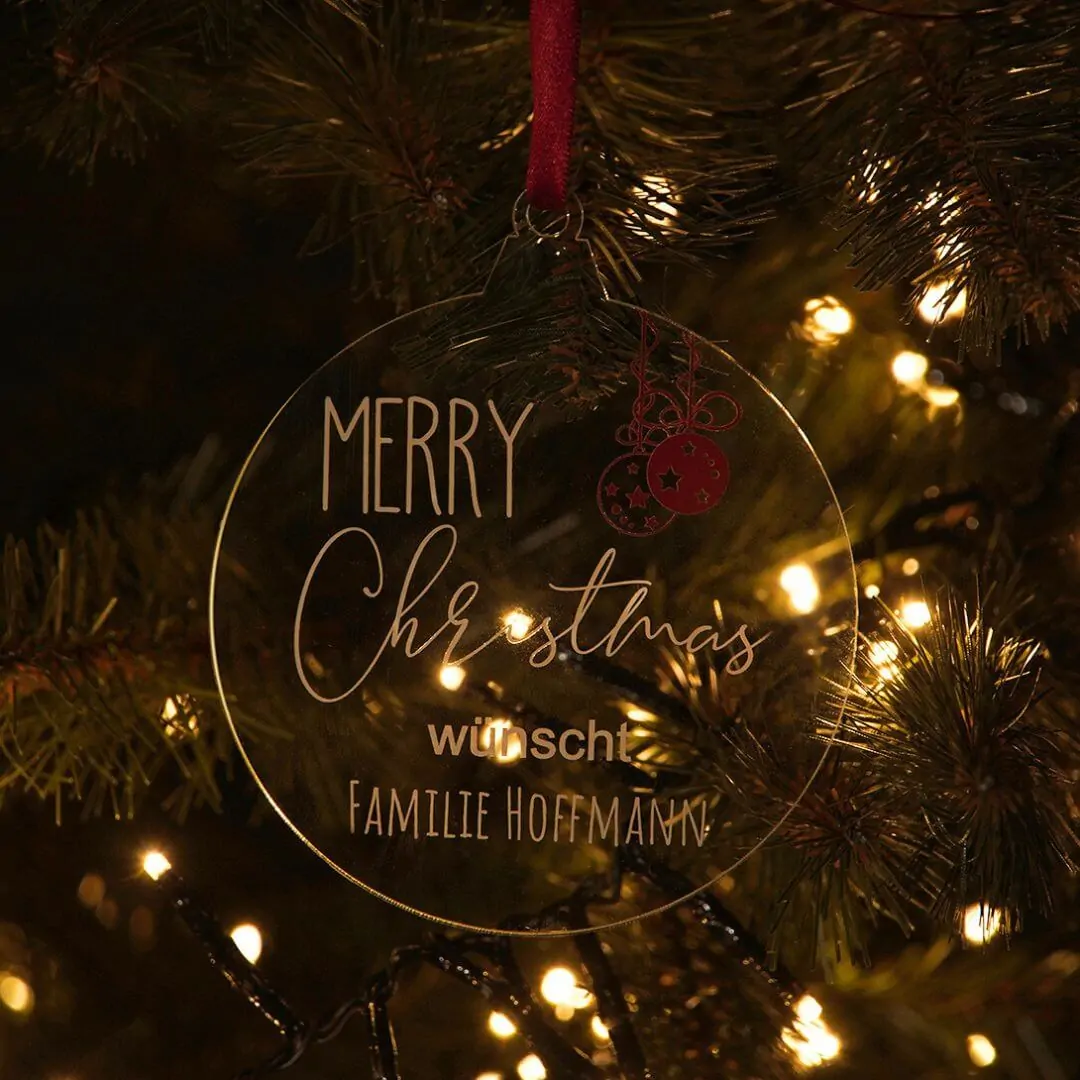 Bei uns findest Du viele verschiedene Christbaumkugeln aus Acrylglas, die Du individuell personalisieren kannst. Schmücke Deinen Weihnachtsbaum dieses Jahr mit personalisierten Weihnachtskugeln, die Du mit Namen oder Text verzieren kannst. Jeder Weihnachtsbaum Anhänger wird ein echtes Unikat sein – so sollte Christbaum Deko sein!