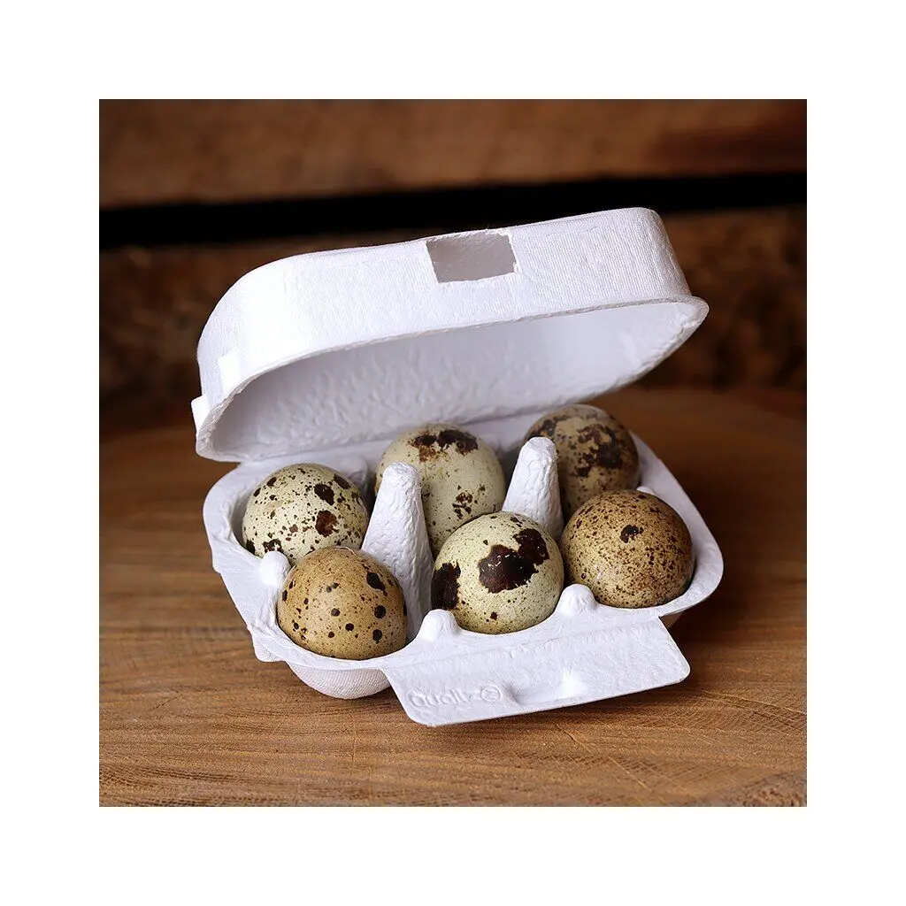 Quailzz® Wachteleierschachtel für 6 Wachteleier (oder Schokoladeneier oder Blumenmurmeln) in der Farbe weiss.